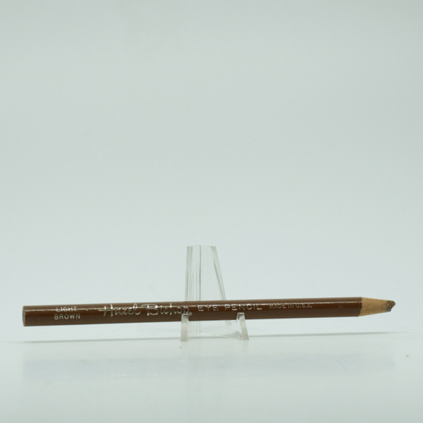 A brown eye pencil embossed with the words, "Dark Brown / Glorene of Hollywood," and a gold cap. The flat tip of the pencil can be accessed by pulling the cap away from the pencil.
