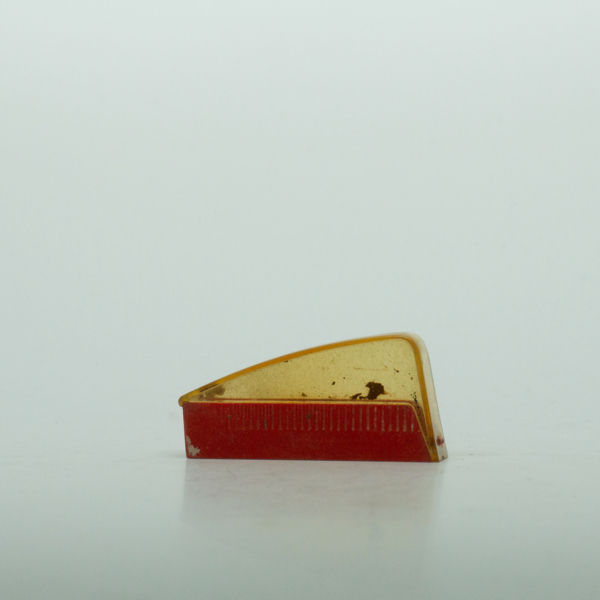 A red pencil sharpener and removable transparent lid with text reading, "Maybelline." The bottom of the pencil sharpener is embossed with text reading, "Made in U.S.A. / Pat No, D-191.556 / / Pat No. 3,097,629"