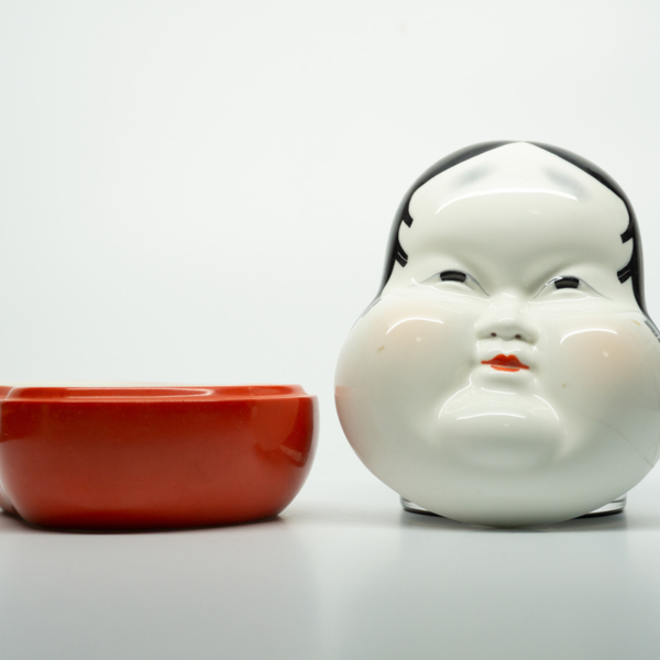 A head shaped jar that can be opened by lifting the face from the base.