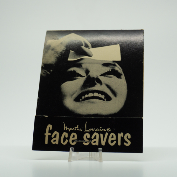 A black cardboard box containing eight trimmed, false eyelashes. Text on the top of the box reads, "Martha Lorraine Eyelashes." The eyelashes can be accessed by lifting the lid gently from the seam at the bottom of the box. A shade label sticker on…