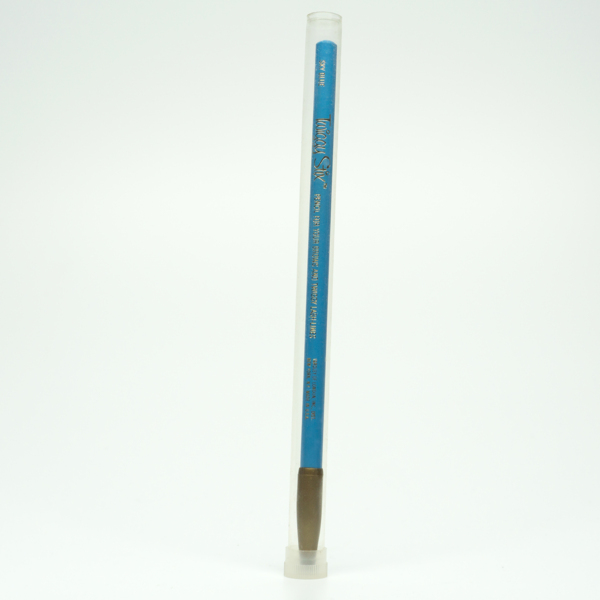 An eyeliner pencil with a light blue wrap and gold plastic lid. The pencil is inside of a plastic tube. Text on the pencil reads, "Sky Blue / Twiggy Stix [trademark] / Pencil for your brows and Twiggy lash lines / Yardley of London, Inc. Dist. New…